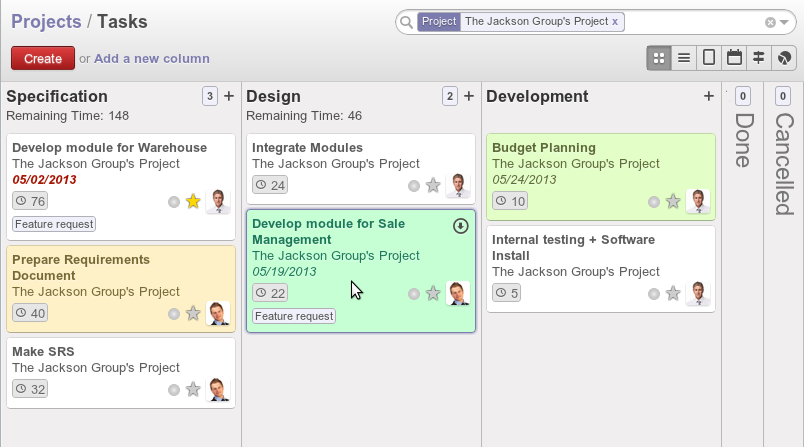 Organize projects around your own processes. Work on tasks and issues using the kanban view, schedule tasks using the gantt chart and control deadlines in the calendar view. Every project may have it's own stages allowing teams to optimize their job.
